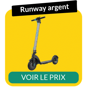 En montant en gamme, Wegoboard vous propose 3 modèles supplémentaires. La taille minimale des pneumatiques est de 8 pouces pour vous apporter un confort sur la route. La première est la trottinette électrique booster max. Avec une autonomie de 20 km et un franchissement de côtes de 17 degrés, cette trottinette urbaine vous permettra de vous rendre facilement à votre travail en évitant de perdre du temps dans les embouteillages. Vous pourrez emporter avec vous un sac à dos, car contrairement au modèle précédent, elle peut supporter 120 kg. Elle est aussi disponible en noir, en bleu et en noir/rouge. Vous pourrez choisir le modèle qui vous plaît le plus. La seconde trottinette électrique a une autonomie un peu plus grande, puisque vous atteindrez les 25 km. Par contre, on repasse avec une charge maximale de 100 kg, comme pour la 4Flex. Il s’agit de la trottinette électrique street 7. Autre différence avec la Booster Max : les pneus de 8 pouces sont cette fois gonflables et non plus en gomme dure. Vous aurez donc un meilleur amorti. Là encore vous aurez le choix entre 3 coloris, que je trouve encore plus sympathique et design : noir/bleu, noir/rouge, noir/jaune. La dernière trottinette de cette catégorie est la trottinette électrique runway. On remonte de nouveau à 120 kg de charge supportée. Le reste des caractéristiques augmentent également avec une autonomie confortable de 25 km, la possibilité de monter facilement des pentes de 25 degrés et des pneus un peu plus larges, soit de 8,5 pouces. Par contre, vous ne pourrez choisir qu’entre le noir et l’argent. J’ai une petite préférence pour le second colori.