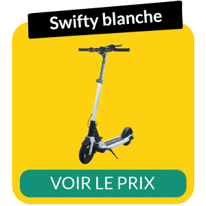 Pour terminer ce comparatif de trottinettes électriques Wegoboard, il me reste à vous évoquer 2 derniers modèles. La trottinette électrique swifty qui est disponible soit en noir, soit en blanc, vous permettra de rouler jusqu’à 40 km avec une charge maximale de 120 kg. Pour rouler avec confort, la marque a équipé la Swifty de pneus gonflables de 8.5 pouces.